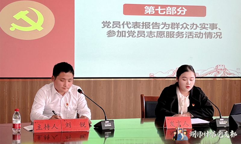 党员代表左子怡同志汇报了学生第一党支部今年以来深入学习贯彻习近平新时代中国特色社会主义思想、紧扣实践需求、为群众办实事。重点介绍深入落实“为群众办实事、参加党员志愿服务”活动情况。