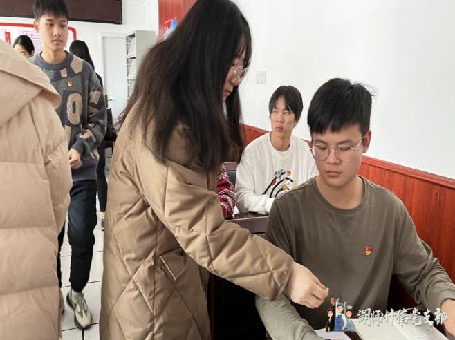 活动现场,全体党员有序地交纳11月党费;学生党员袁赐安领誓、全体党员重温入党誓词并诵读《中国共产党章程》第一章一至三条。