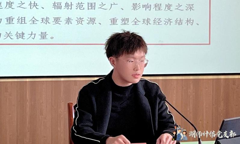 接着,学生党员闵锐同志带领大家深入学习在中共中央政治局第三十四次集体学习上的重要讲话精神会议。倡导全体党员们要在学习上做“加法”、在理念上做“减法”,力戒“形式主义”,勇于担起责任,保持慢不得,等不得“危机感”。