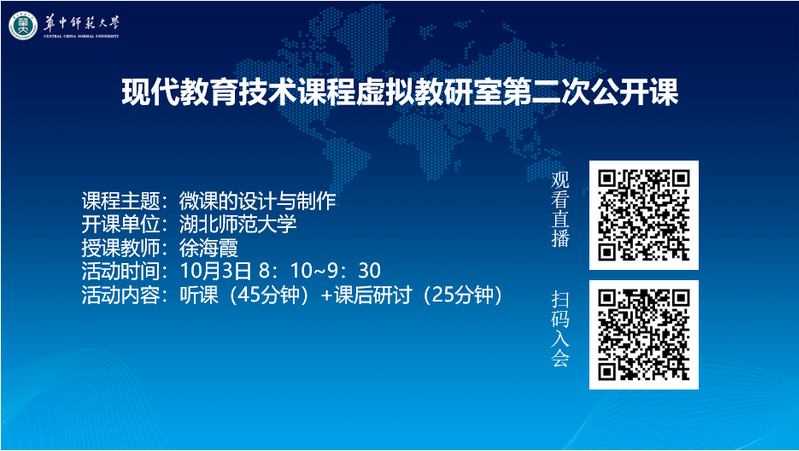 本次线上公开课教研活动,是华师“现代教育技术课程虚拟教研室”公开课系列活动之一。