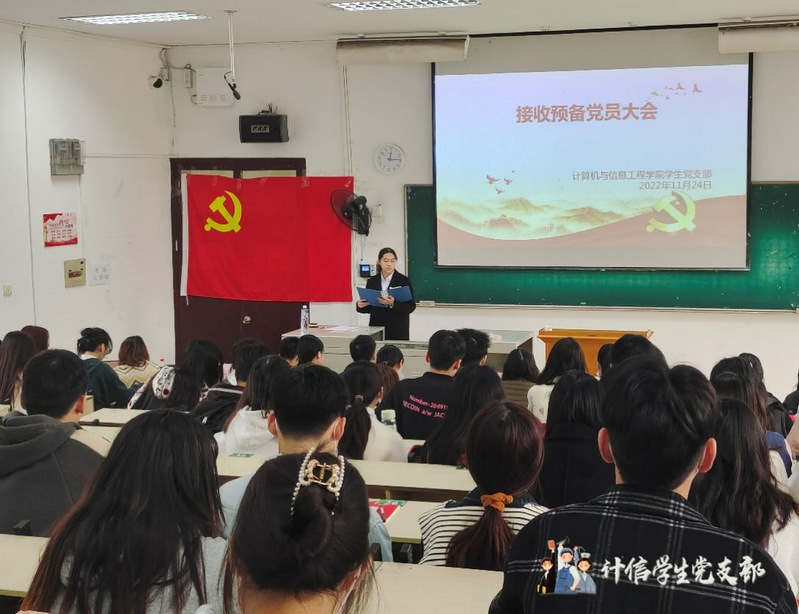 本次计算机与信息工程学院学生党支部讨论接收预备党员支部党员大会圆满结束。希望本次接收的预备党员能够牢记自己的入党动机,牢记使命,做到在思想上有党员意识,行动上以党员的各项标准严格要求自己,不忘初心,吃苦在前,享受在后,充分发挥党员的先锋模范作用。