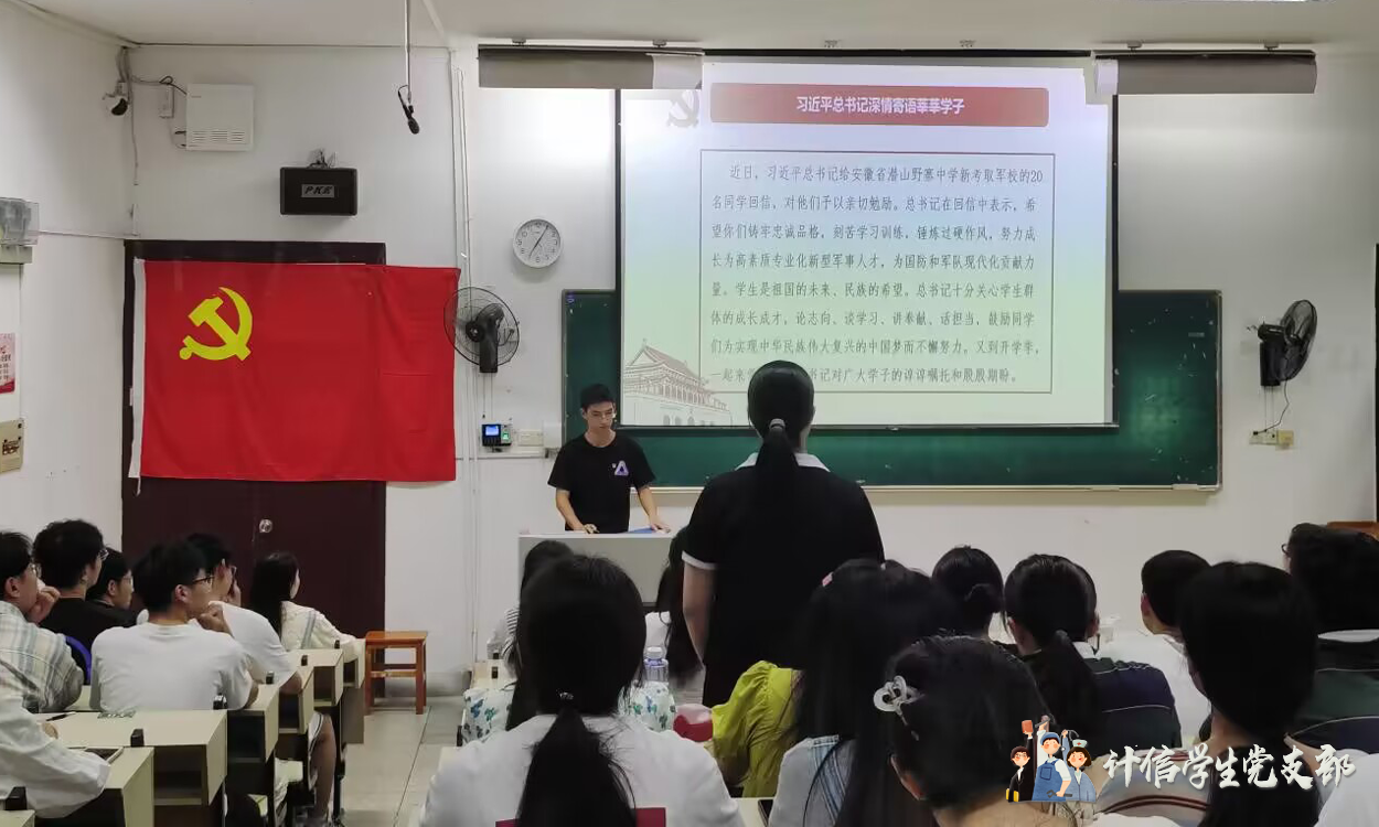 (通讯员 方 林 2023-9-26)为深入学习贯彻习近平新时代中国特色社会主义思想,推进党建引领学校发展,着力促进基层党建工作提质增效,计算机与信息工程学院学生党支部于2023年9月26日在教育大楼1J11教室开展了以“巩固深化主题教育成果,立足岗位推动学校发展”为主题的党日活动。与会人员有计算机与信息工程学院学生第一党支部书记冯欣老师以及学生党支部全体党员。