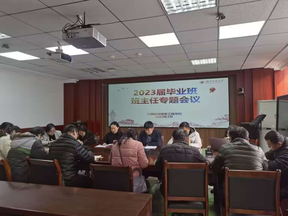 为进一步推进2023届毕业生就业工作,计算机与信息工程学院于2023年3月9日于教育大楼1715教室顺利召开了2022届毕业生班班主任就业专题会,参与此次会议的有院长杨杏本,党委副书记柯海燕,2019级全体班主任,辅导员。