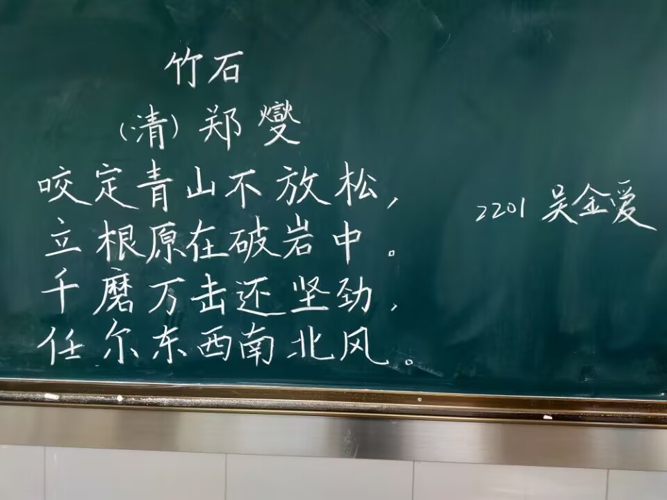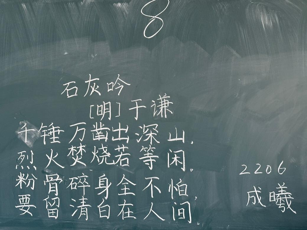 本次粉笔字比赛不仅为同学们提供了一个展示自我的平台,还让同学们深刻体会到粉笔作为一个传统书写工具的独特魅力。最后,本次我院的粉笔字比赛预赛圆满结束,感谢所有参赛选手的精彩表现以及评委们的辛勤付出。