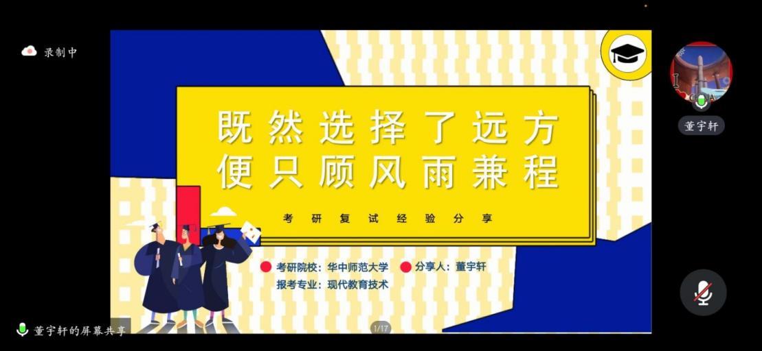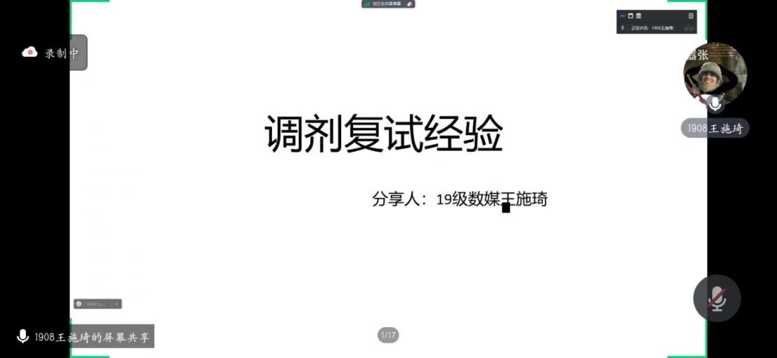 三位同学围绕招考情况、备考经验、答题技巧、面试心得、心态调整、读研目标等内容进行了交流与分享,并结合自身经历提出了宝贵建议。尹永涛讲到了心态的重要性,良好的心态是成功的开始,做任何事的时候都要保持一个良好的心态,这样才能取得成功;董宇轩介绍了复试所需准备的材料,并结合自己学校讲解了复试比例、复试时间、复试形式及复试内容等;王施琦向大家介绍了与调剂相关的内容,让大家了解到专业是灵活互通的,掌握信息获取方法和渠道,多了解调剂信息。最后,他们衷心祝愿学弟学妹们都能实现自己的梦想,把学院这种优良的学风传承下去。