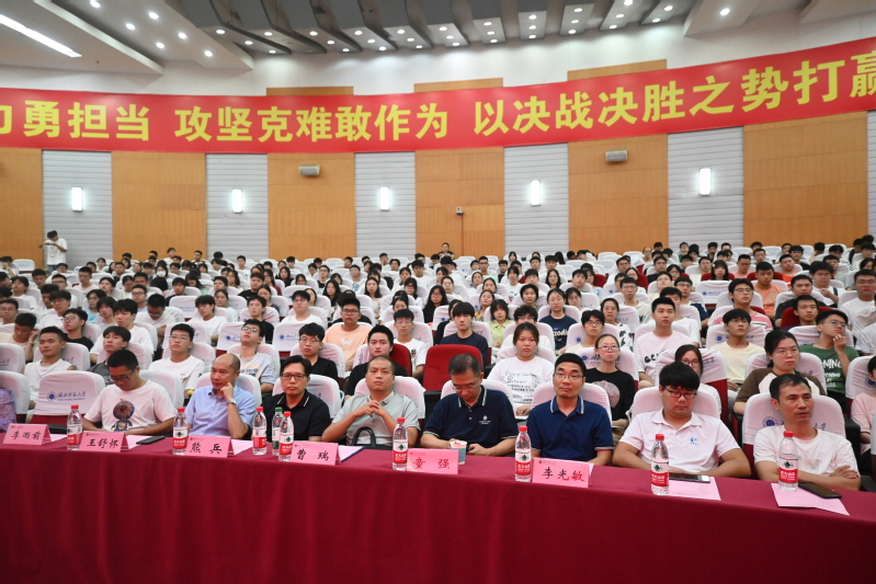 出席本次开学典礼活动的有,院党委书记王舒怀老师;院党委副书记、学生工作负责人刘健老师;00级优秀校友,长沙理工大学副教授、硕士生导师熊兵学长;03级优秀校友,杭州阿里云飞天信息技术有限公司高级技术专家李雨前学长;学院全体辅导员、新生班主任等老师以及各新生班级的学生班主任。