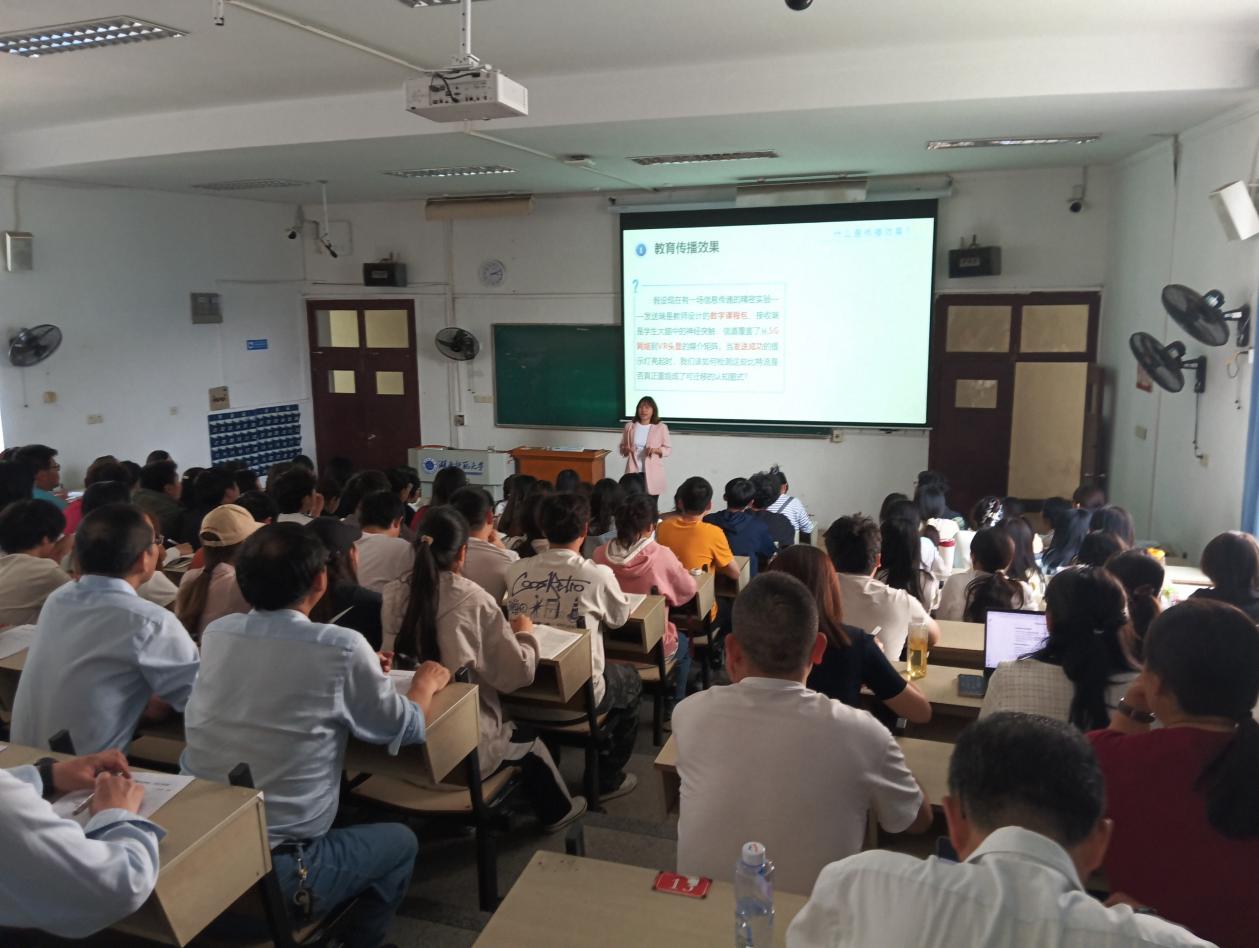 第二场示范观摩课由教育技术学系邓明华副教授展示《教育传播学》"传播效果优化"专题教学。邓老师精神饱满,课堂内容充实,节奏紧凑,PPT画面美观,结构清晰明了。邓老师在讲授主题内容的同时,还运用了数字画像,人工智能体辅助教学等新技术。