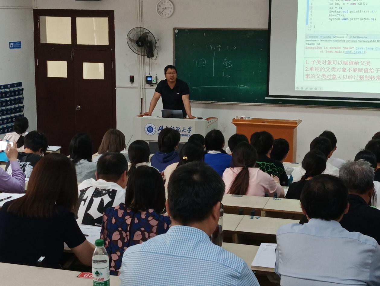 首场示范观摩课由计算机科学与技术系李旸老师主讲《面向对象程序设计》"继承与多态"章节。李老师通过知识点回顾自然切入新章节,并将抽象的概念用学生容易理解的事例进行讲解,活跃了课堂气氛;李老师还引导学生利用网上资源学习,学会自主学习。