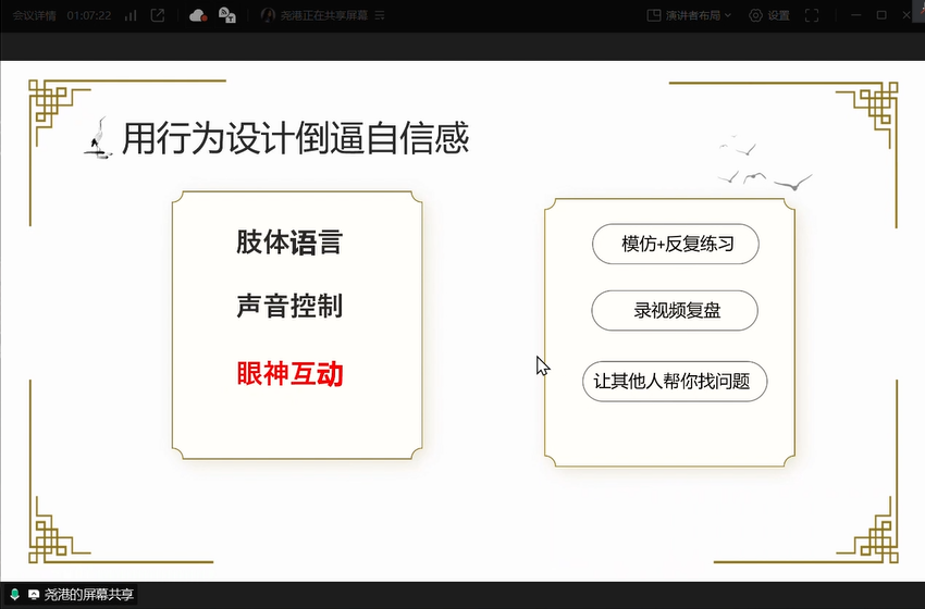 分享会伊始,主持人对到场同学表示热烈欢迎,并简要介绍了本次分享会的流程和目的。随后,主讲人依次进行经验分享,结合自身的备考经历,分享了教师招聘类型,笔试准备,面试试讲、说课、结构化等大家关心的问题。邹莉娟介绍了信息收集和选岗的重要性以及笔试备考、面试准备的注意事项;谢丹阳分享了考试流程、笔试答题技巧以及面试着装建议,进行了模块分析;尧港着重强调了面试自信的重要性、分享了获得和展示自信的方法。