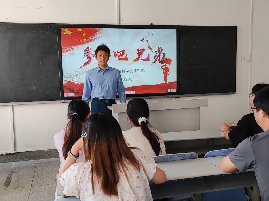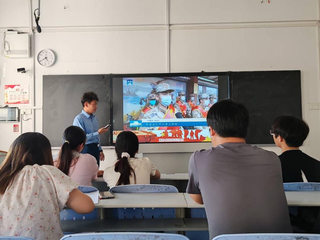 宣讲会伊始,退役学生帅远礼结合自身经历,向大家分享了他丰富多彩的军旅生活,并讲解了征兵入伍政策等经验。随后在互动环节中,参会学生积极提问,与学长进行了深入交流。面对同学们的提问,学长耐心解答,给出了宝贵的建议和指导。最后,辅导员卢老师进行总结发言,他鼓励同学们将个人理想融入国家发展,把握参军机遇,在军营中锤炼自我,以青春热血践行责任担当,为国防事业添砖加瓦。