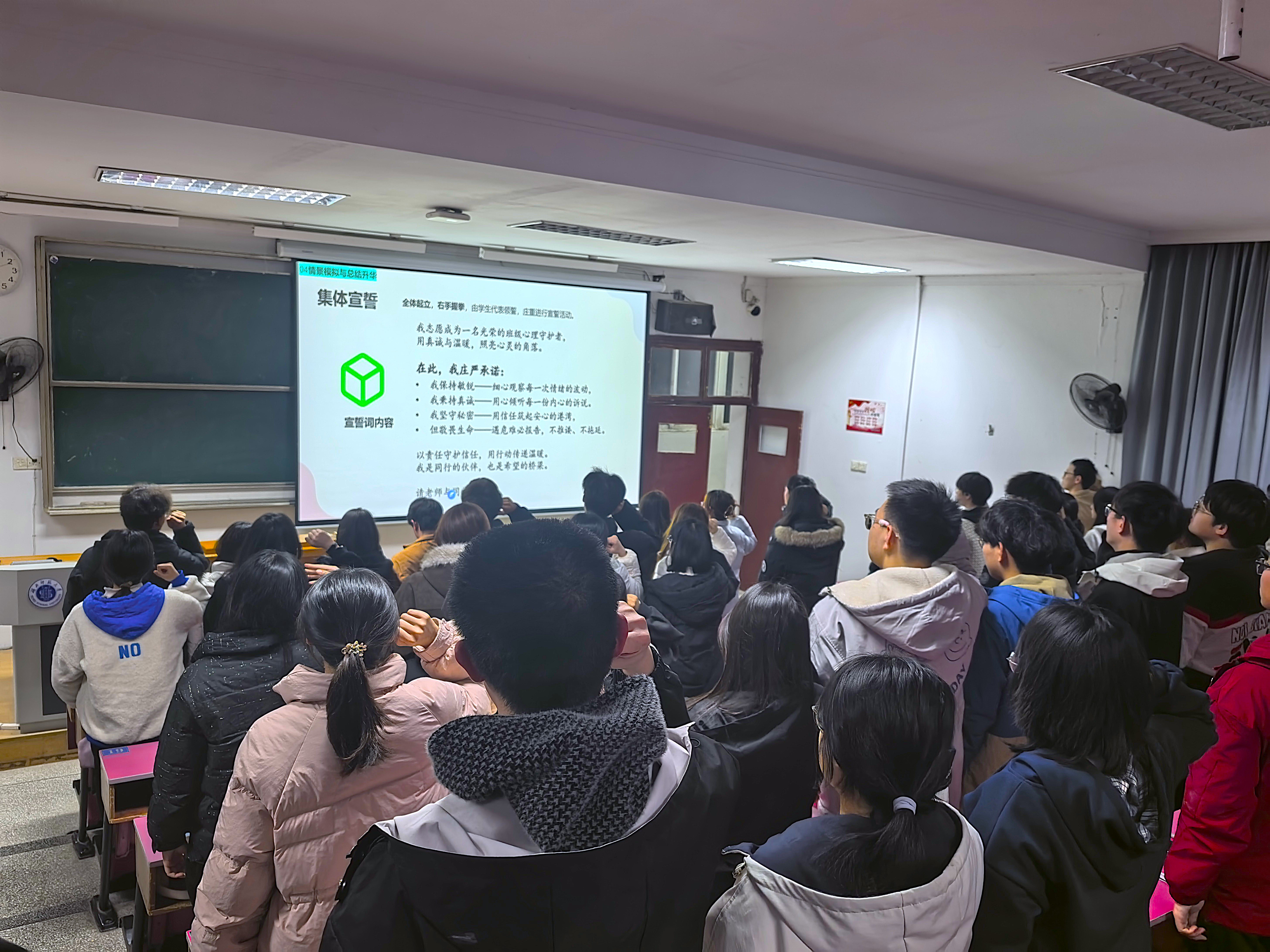为确保会议顺利举行,学院心理部提前谋划、周密部署,全体成员分工协作、高效推进。活动前期,部门通过班级群精准推送参会通知,逐一确认参会人员名单;活动当天,成员们提前抵达会场,细致完成设备调试、场地布置等筹备工作,以严谨负责的态度为会议保驾护航,用实际行动诠释了“服务师生”的工作理念。