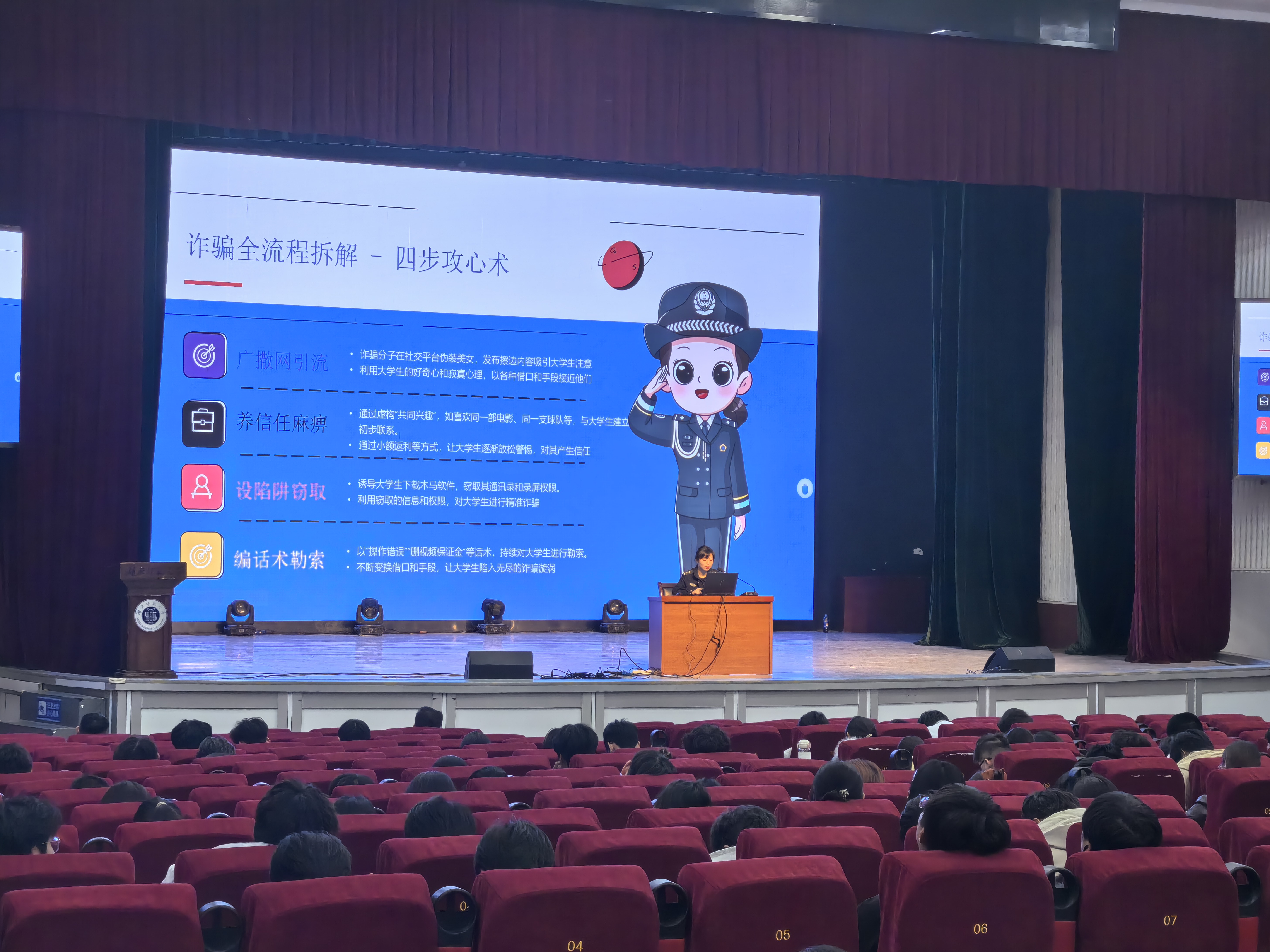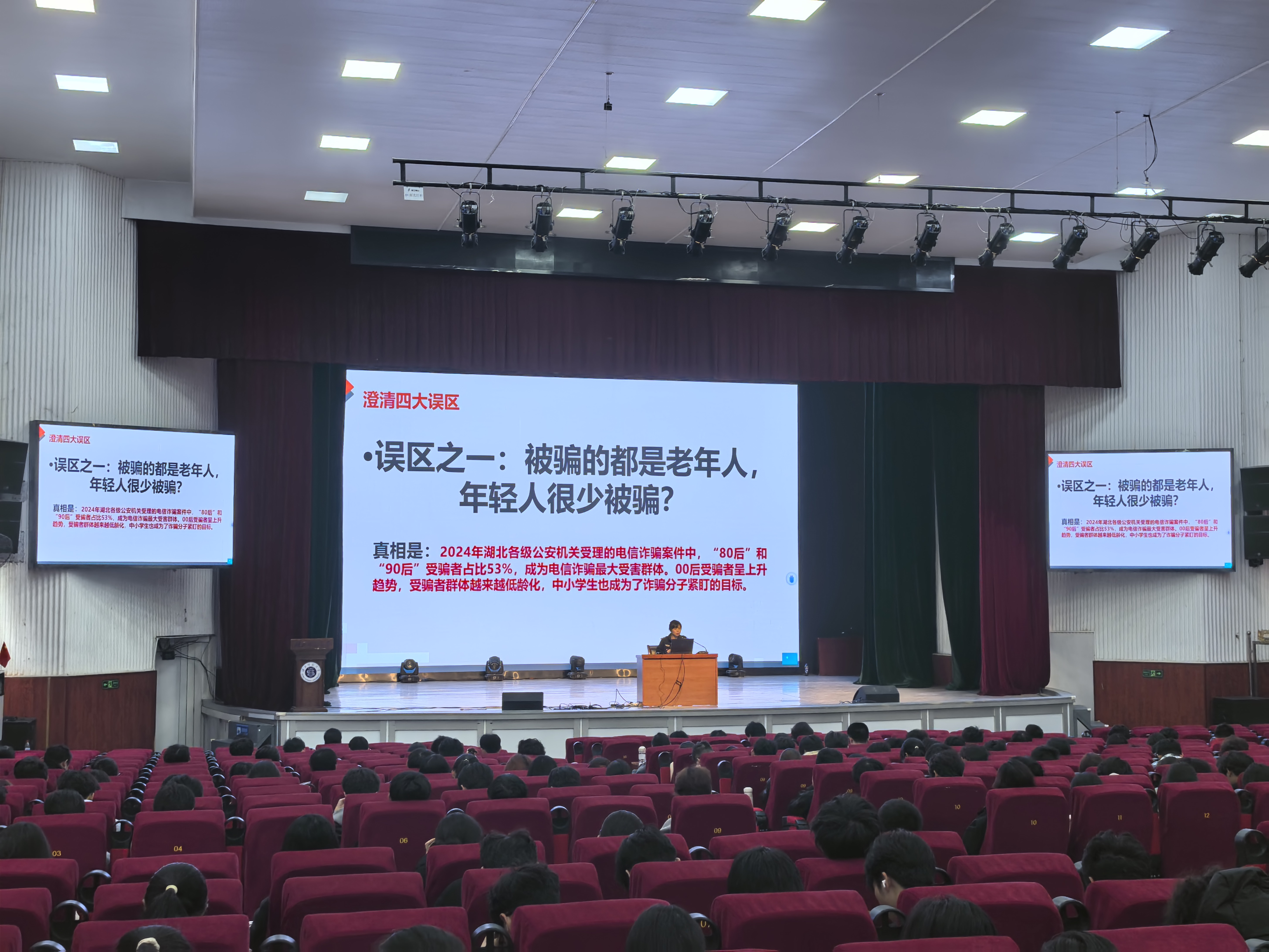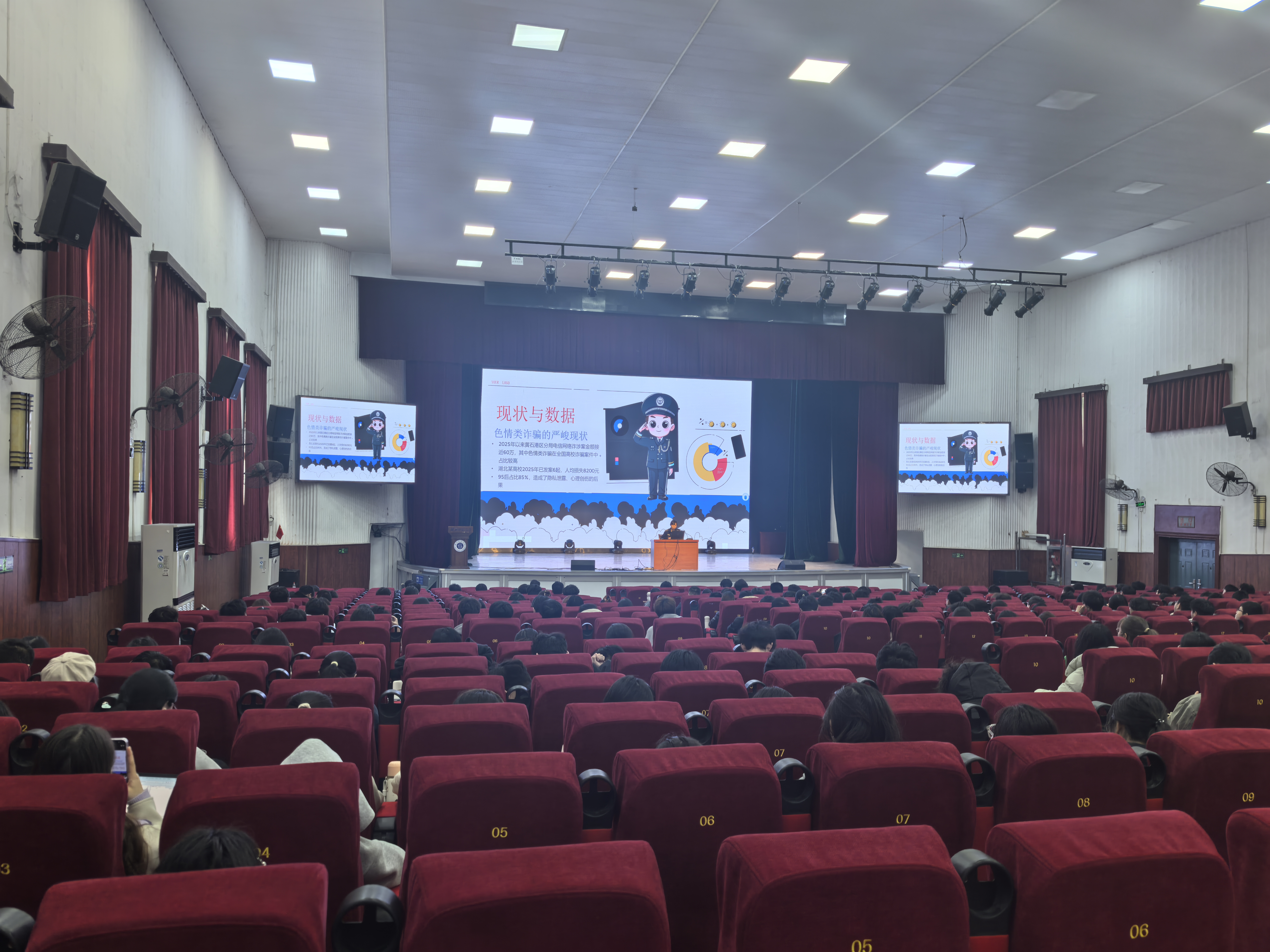 为深入贯彻落实国家关于网络安全和防范电信网络诈骗工作的部署要求,切实增强学生防范电信网络诈骗的意识和能力,3月26日下午,FUN88乐天使联合学校保卫处在湖师大礼堂举办反诈安全教育主题讲座。本次活动特邀辖区派出所邓警官、赵警官担任主讲,学院2024级学生干部、2025级全体学生参加讲座。