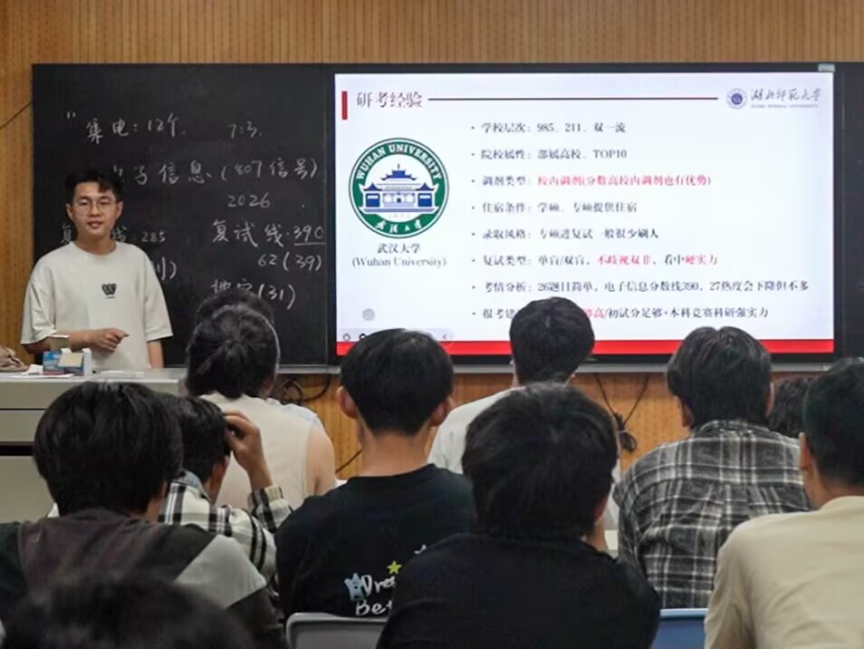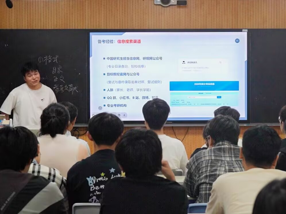 人工智能2206班陈术的考研经验分享为备考同学提供了科学实用的全程指导。他以“选择大于努力,复盘胜于蛮干”为理念,结合考入华中农业大学的经历,从择校方法、时间节点、各科复习策略到复试准备逐一讲解,强调及时复盘、高效自学与平稳心态的重要性。通过此次分享,同学们清晰掌握了考研备考流程与复习技巧,树立了正确备考心态,明确了努力方向,更懂得了坚持与规划的重要意义。